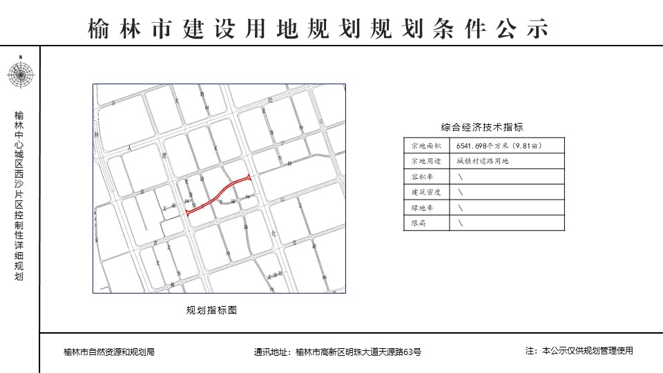 宗地坐落于榆阳区文化南路西、建榆路东,面积6541.698平方米(折合9.81亩),用途城镇村道路用地。